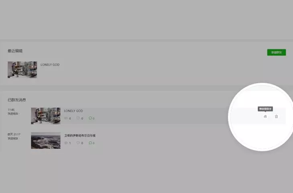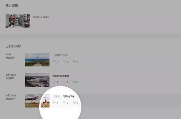 3、修改完成,在首頁已群發(fā)列表,可以看到文章狀態(tài)變更為“已修改”。用戶訪問文章將看到已更新的內(nèi)容。文章底部將顯示修改時刻。