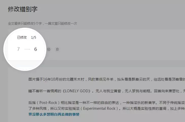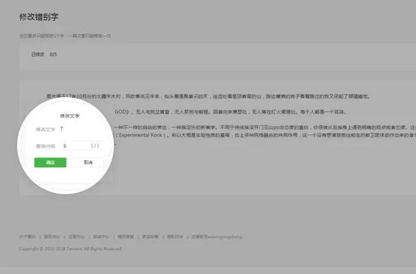 為了給運營者、讀者提供更友好的編輯、閱讀體驗,公眾平臺新增修改文章錯別字功能,支持運營者對已群發(fā)文章進行小范圍修改。每篇文章允許被修改一次,修改范圍僅限正文內(nèi)五個字。