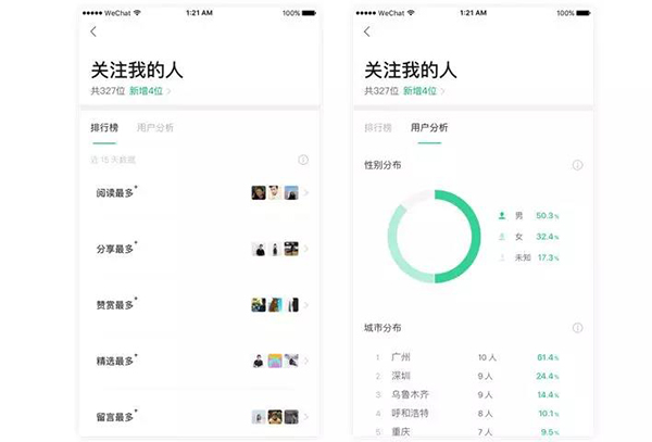 1. 及時查看新關(guān)注用戶的信息,或通過排行榜了解最關(guān)心你的用戶。
