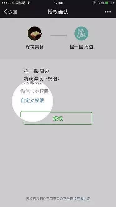 2. 在確認(rèn)頁(yè),運(yùn)營(yíng)者可以點(diǎn)擊“自定義權(quán)限”,選擇部分權(quán)限授權(quán)給第三方平臺(tái)。