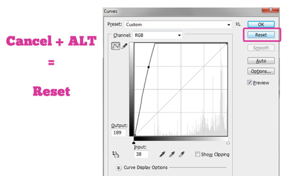 ps的小白們一定會覺得曲線和色階調(diào)整不好把控,部分時候有些色階結(jié)合或其他的調(diào)整不能很好的融合,而這到時設(shè)計師不得不重新開始,通俗的對應(yīng)方法是:點擊取消按鈕,或者重新打開調(diào)整面板。不過這里文率小編想給大家分享一個節(jié)省時間的小竅門,當(dāng)你想要重新做一個曲線,不要直接點擊取消按鈕,按住ALT鍵,“取消”將會瞬間變身成一個叫“復(fù)位”的東西,點擊復(fù)位,曲線就會回到初始狀態(tài)啦!