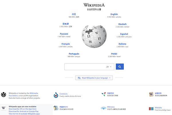 網(wǎng)址:https://www.wikipedia.org/