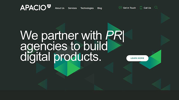 好的設(shè)計(jì)就應(yīng)該緊隨時(shí)代的發(fā)展,這樣才能具有富有時(shí)代感的體驗(yàn),背景紋理設(shè)計(jì)同樣如此。當(dāng)下,最流行的設(shè)計(jì)元素之一就是幾何圖形元素,將幾何圖形融入到背景當(dāng)中,毫無(wú)疑問非常具有吸引力,如:Apacio這個(gè)網(wǎng)站,它采用深色的背景之上混合色彩鮮艷的幾何圖案,創(chuàng)建出富有深度且抓人眼球的視覺,而文字方面采用了簡(jiǎn)約的非襯線體,使得它們可以從黑色和綠色的背景中脫穎而出。