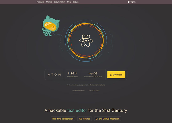 因為這樣的表達方式更加清楚,用戶也可以一目了然,明白點擊之后會發(fā)生什么,至于其他微文案,也盡量斟酌它們的表述方式,怎么才能更加有利于用戶。注意看Atom上面這個頁面是如何設計下載按鈕的,微文案和色彩的搭配,視覺效果非常突出,是一個非常優(yōu)秀的CTA按鈕,值得設計師借鑒哦!
