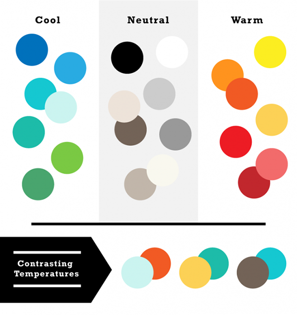 配色同樣最容易被感知到的設(shè)計(jì)元素,色彩的色相、明暗、飽和度上的差異,都可以制造足夠的對(duì)比度。同一種色相下,不同深淺的顏色之間的對(duì)比是非常明顯的,而我們最常見(jiàn)的就是在黑色背景上的白色文本和在白色背景上的黑色文本,這種對(duì)比度確保了內(nèi)容擁有基本的可讀性。當(dāng)然,在實(shí)際的色彩搭配當(dāng)中,對(duì)比度足夠明顯的配色方案會(huì)更加復(fù)雜,通常而言,下面的幾種搭配方式能夠給你對(duì)比明顯效果不錯(cuò)的配色:
