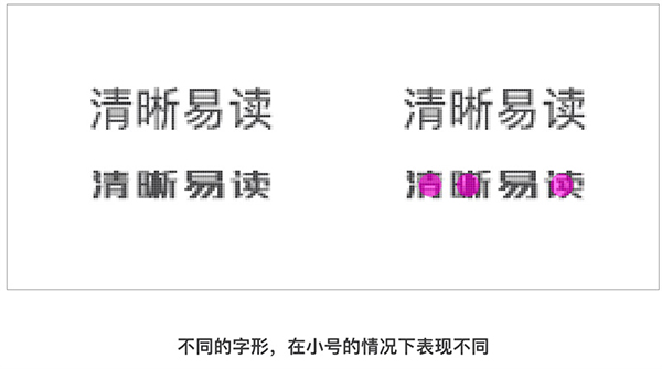 C、字形的場景適應(yīng):由于不同的字形給用戶帶來不同的感受,因場景需要,在一定情況下我們會選擇自定義字體。當(dāng)我們選擇不同的字體時,需考慮字體在產(chǎn)品內(nèi)不同模板下的易讀性問題。