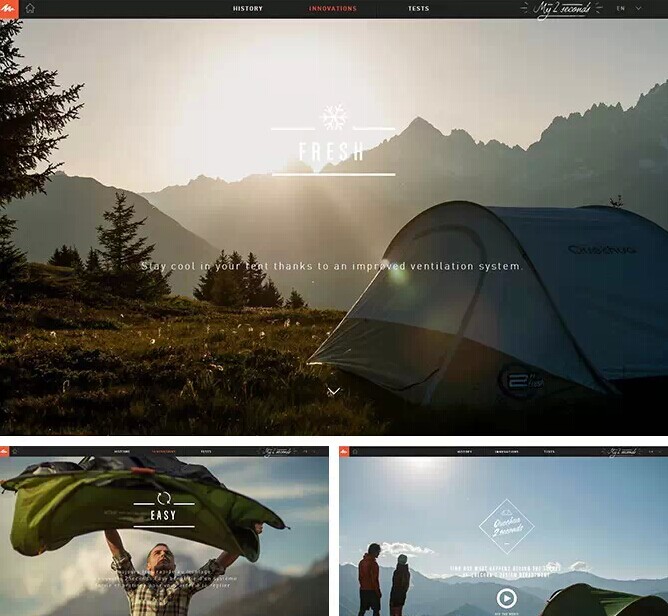 例如,Quechua山地運(yùn)動(dòng)品牌,通過幾張照片和簡(jiǎn)單文字的說明,將Quechua帳篷的特點(diǎn)及所處環(huán)境真實(shí)體現(xiàn),仿佛一場(chǎng)美妙之旅讓人心動(dòng)。