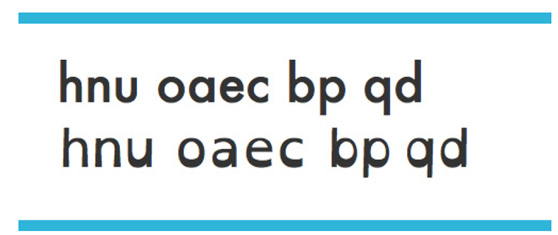 另外對于有閱讀障礙的人來說,幾何形字體很難閱讀因為從結構和形狀上來說都是很相似的。p鏡像過來看就是q,n反過來看起來就像u。這里的意思不是說我們要馬上把它換成專門的字體,但是能意識到這種問題可以反映設計師的讀寫能力。
