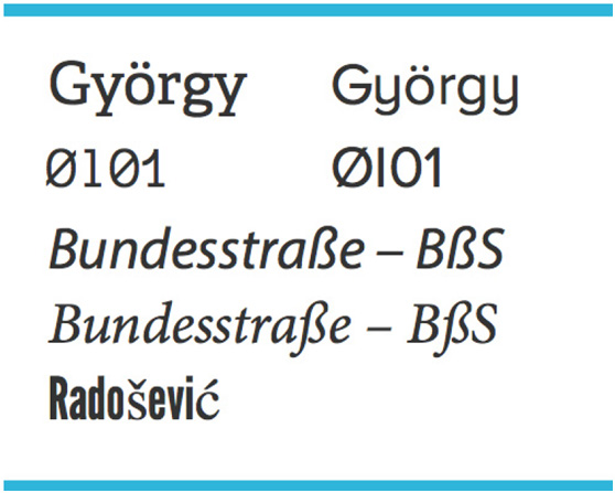 在東南歐,姓氏經常是以“?”或“?”結尾的,沒人喜歡他們的名字里有被剝奪了發(fā)音的字母,更糟的是還用后備字體來渲染。丹麥和挪威使用“?“,德國使用“?”,這些只存在于拉丁字母表內。