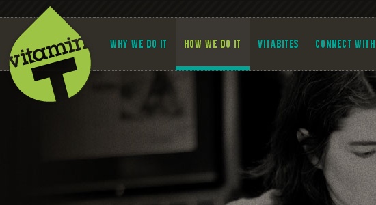 2、美妙的暗色首頁完美運用了背景與前景的對比。其左上角無縫貼合的漢堡按鈕與logo和文字完美回應(yīng),以美妙的方式呈現(xiàn)出了一副以圖片為核心的漂亮導(dǎo)航欄。