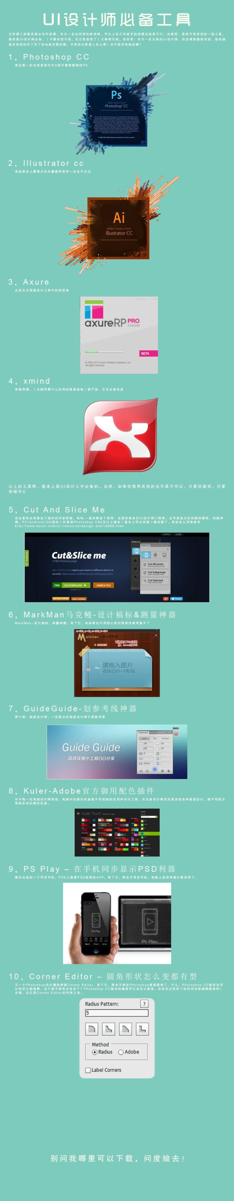 用戶界面設計在持續(xù)的基礎上不斷成長和演變,要跟上時代的發(fā)展,你需要緊跟互聯網的發(fā)展,在設計的過程中適當的使用一些輔助工具。工具的發(fā)展是隨著設計的發(fā)展與時俱進的,一個好的工具會給設計師帶來高效、便捷的感受,提高設計產出的質量,所以不管你是一個新手還是一個經驗豐富的老鳥,都不應該停止尋找一些會讓你的工作變得輕松的工具。