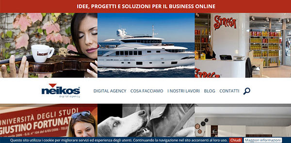 Neikos 是一個早在1998年就已經存在的數字設計機構,它為客戶提供在線營銷的解決方案和服務,網站的布局也是基于案例展示的目的和柵格布局來設計的,紅色是他們的品牌識別色,在網頁配色方案中也是最主要的色調。