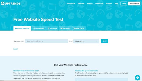 Uptrends是一個(gè)非?;镜姆?wù),但提供超過(guò)35個(gè)國(guó)家節(jié)點(diǎn)讓你選擇并執(zhí)行網(wǎng)站速度測(cè)試工具。他們的報(bào)表分為兩部分,一個(gè)瀑布圖及域名群組。域名群組提供一個(gè)獨(dú)特的視角,因?yàn)樗奄Y源歸類到不同來(lái)源:⑴方、統(tǒng)計(jì)、CDN、社交網(wǎng)站、廣告及第三方。