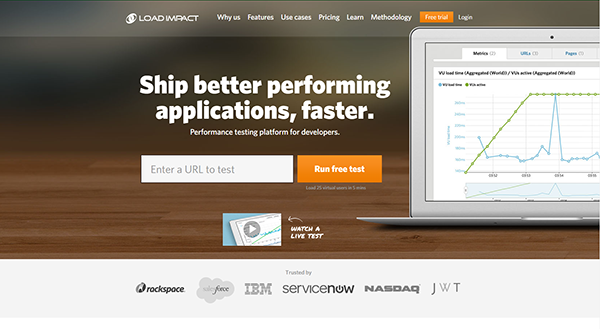 Load Impact是一款在線網(wǎng)站壓力測(cè)試工具,只需要輸入網(wǎng)址進(jìn)行測(cè)試,其便可以統(tǒng)計(jì)出加載網(wǎng)站的一些詳細(xì)載入數(shù)據(jù),主要包括整體加載和站內(nèi)圖片,javascript, CSS等代碼載入,并且當(dāng)測(cè)試完成之后,網(wǎng)站還可以存儲(chǔ)測(cè)試過(guò)的統(tǒng)計(jì)數(shù)據(jù)。