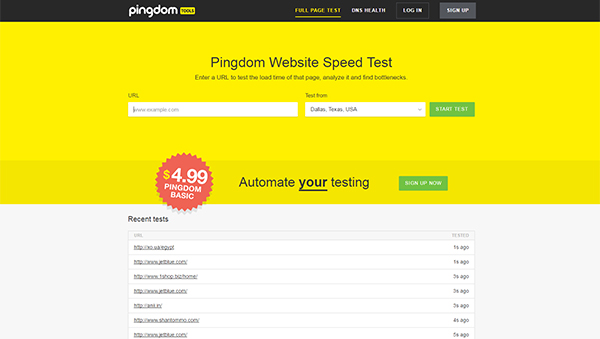Pingdom Tools是屬于一個(gè)不錯(cuò)的網(wǎng)站監(jiān)測(cè)服務(wù),可以針對(duì)每個(gè)網(wǎng)頁(yè)的圖像,css和JavaScript進(jìn)行測(cè)試,并給出性能等級(jí),不僅如此,它還可以提供頁(yè)面加載時(shí)間,頁(yè)面大小和請(qǐng)求信息的數(shù)據(jù)。