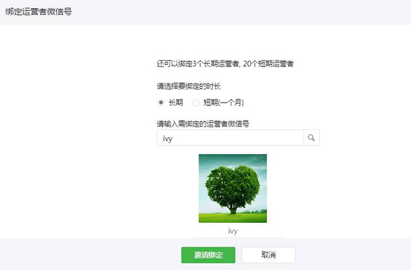 安全中心可綁定兩類運營者:長期運營者5個,短期(一個月)運營者20個。