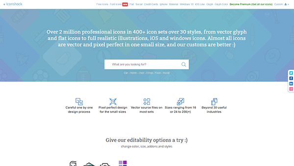 除此之外,Iconshock還允許使用者直接在線上變化不同的配色風(fēng)格。通常情況下,尋找圖標(biāo)時往往會受限于它的設(shè)計風(fēng)格和顏色,但I(xiàn)conshock可以讓使用者自定義顏色、大小或加入配件,使得圖標(biāo)看起來效果一致,也更能與你的網(wǎng)頁相襯。