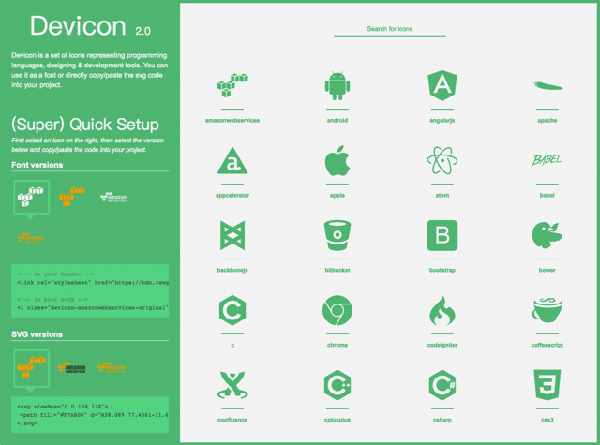 關(guān)于Devicon網(wǎng)站值得一提的是無論是使用哪種格式,都可通過 CSS 調(diào)整大小或顯示方式,讓它能使用于任何網(wǎng)頁。不僅如此,它的字體圖標(biāo)也已經(jīng)支持CDN,開發(fā)者無須自行托管檔案,節(jié)省流量開銷。如果你剛好需要取用這些圖標(biāo),Devicon真的是一個非常不錯的選擇哦!