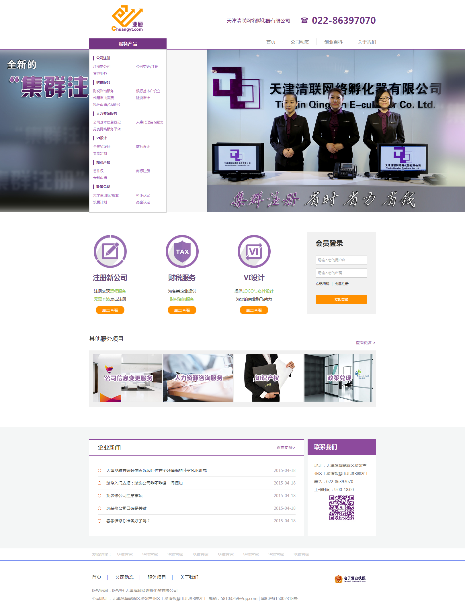天津清聯(lián)網(wǎng)絡(luò)孵化器有限公司是一家基于互聯(lián)網(wǎng)為小微企業(yè)提供集群注冊、代理記賬、網(wǎng)站和logo設(shè)計(jì)以及代理商標(biāo)專利申請、為企業(yè)融資和孵化的互聯(lián)網(wǎng)服務(wù)型企業(yè)。公司位于天津華苑智慧山北塔11層。